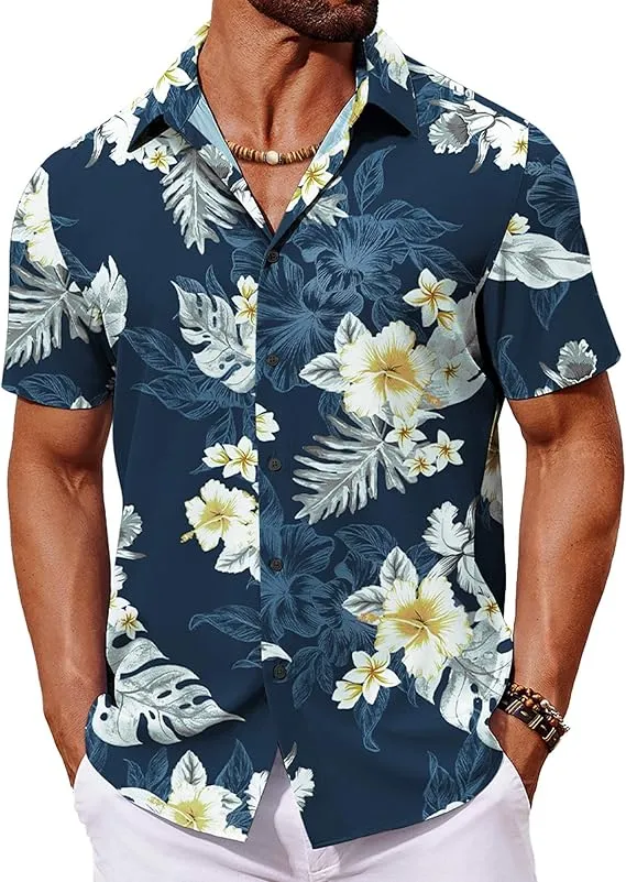 COOFANDY Hawaiian Shirt Short Sleeve Button Down Shirts Tropical Floral