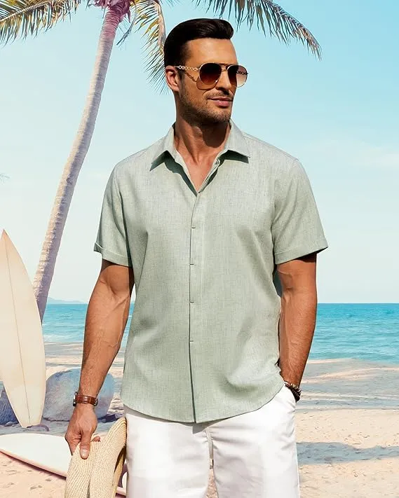 • J.VER Mens Linen Shirt: Mens casual button down shirts are made from high quality cotton and linen. After anti shrinkage treatment, soft, lightweight and breathable to take away the stuffy feeling and keep you cool and comfortable all day long