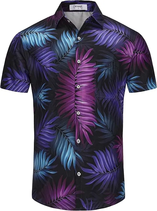 KYKU Hawaiian Shirt for Men: Tropical Summer Beach Short Sleeve Button Down Shirt with Pocket